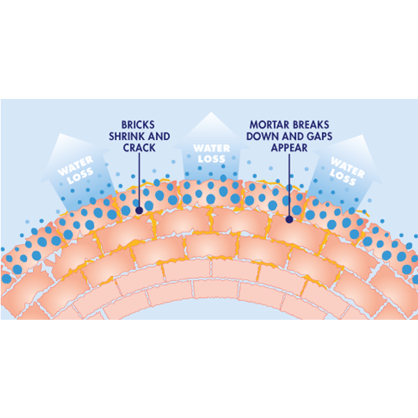 The gaps in the natural protective barrier (caused by not enough ‘mortar’) leave the skin open to invasion by bacteria, allergens, and irritants.