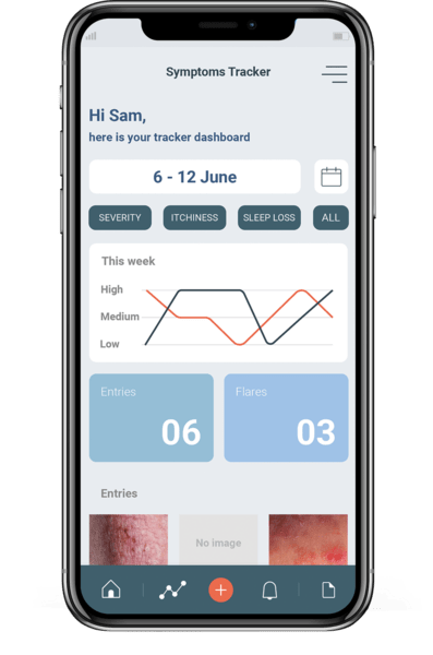 Our symptom tracker allows you to track and monitor changes in your condition by uploading images of any skin flares you may have, rate the severity, itchiness and sleep loss levels and make a note of any triggers. This information can be shared with your healthcare professional to help them to support you with the management of your eczema.