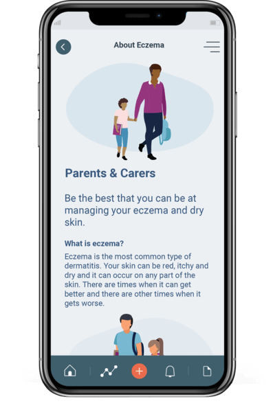 Available on iPhone and Android, Living with Eczema is designed to help patients and their parents or carers with managing eczema, all within your pocket!
